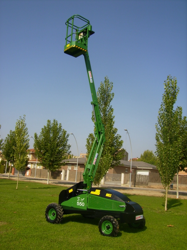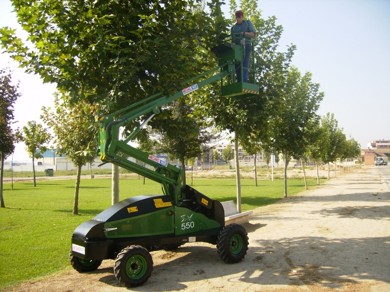 La plataforma elevadora para poda AV 550 con una altura de trabajo de 7,5 m presenta una gran maniobrabilidad gracias a su rapidez en los movimientos de la cesta de trabajo. Nuestro nuevo modelo de plataforma elevadora especialmente diseñada para la poda urbana, poda de jardines, poda de cerezos, poda de almendros, ... También resulta ideal para la poda y mantenimiento de campings y propiedades particulares.