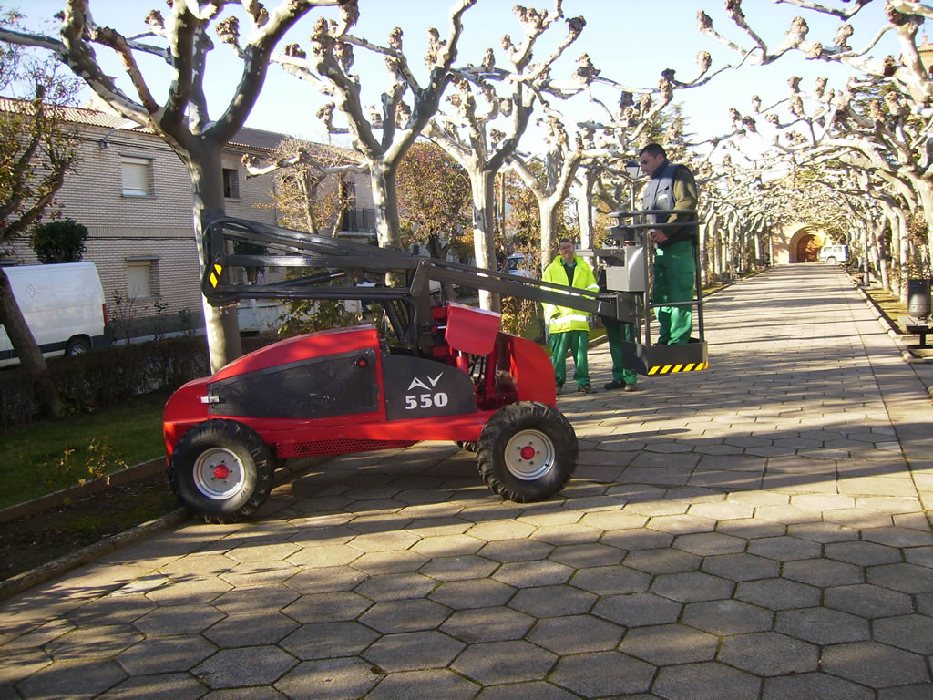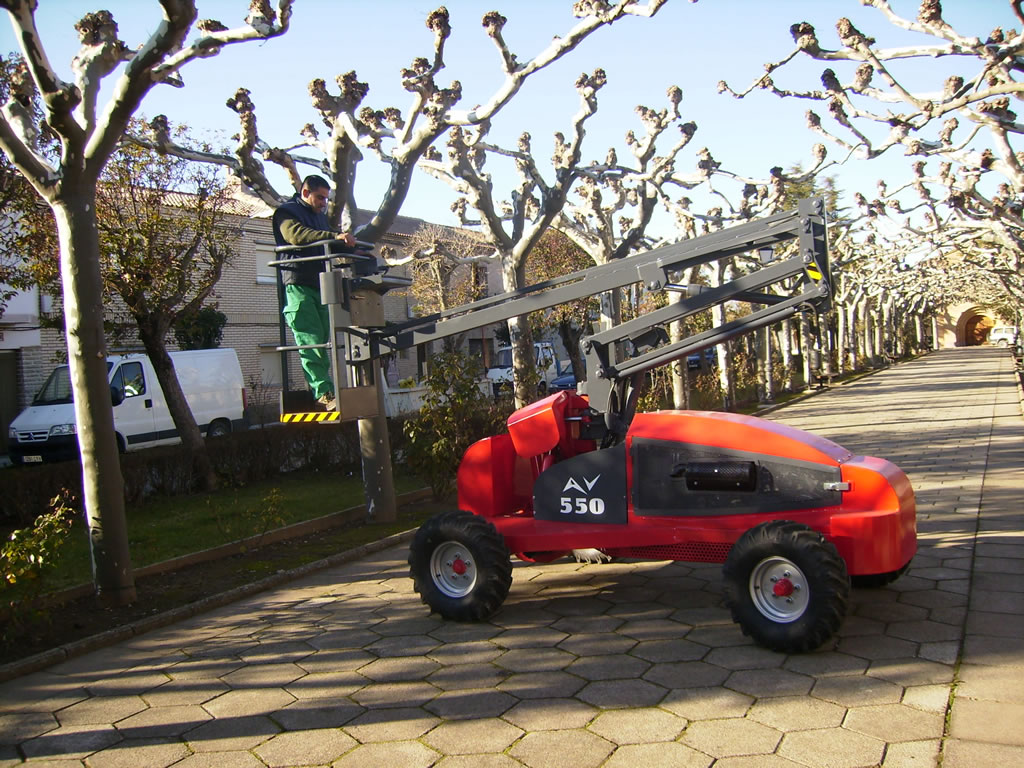 Mecanomar sigue su proceso de investigación para mejorar y facilitar los trabajos para todo tipo de poda en altura. Fruto de este trabajo, presentamos nuestra nueva plataforma elevadora para poda con un sistema autonivelante que permite el trabajo en firmes inclinados hasta 30º. La plataforma elevadora para poda AV 550 con una altura de trabajo de 7,5 m presenta una gran maniobrabilidad gracias a su rapidez en los movimientos de la cesta de trabajo. Nuestro nuevo modelo de plataforma elevadora especialmente diseñada para la poda urbana, poda de jardines, poda de cerezos, poda de almendros, ... También resulta ideal para la poda y mantenimiento de campings y propiedades particulares. Dotada, al igual que sus predecesoras de un equipo neumático y lubricado con gran capacidad de caudal para poder realizar los cortes necesarios y mantener las herramientas de corte (sierra y tijera neumática) en perfecto estado y siempre disponibles para la poda de mayor calidad y facilidad.