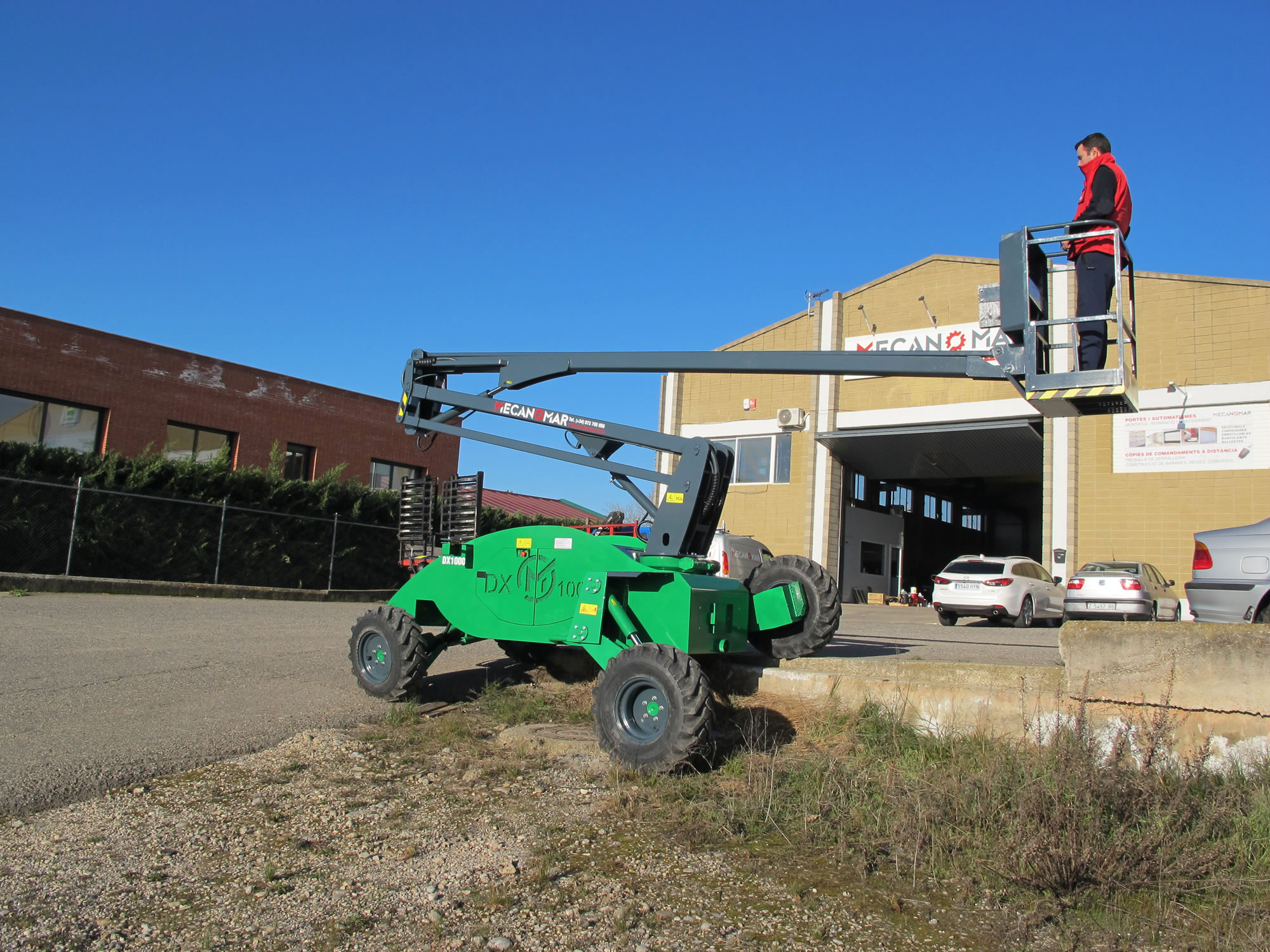 La gama DX de MECANO-MAR está diseñada para reducir el esfuerzo y poder alcanzar los lugares de difícil acceso para la poda de árboles, gracias a la combinación de los movimientos de los brazos articulados. MECANO-MAR DX-1000 con una altura de trabajo de 12 mts y granrapidez en los movimientos de la cesta de trabajo.