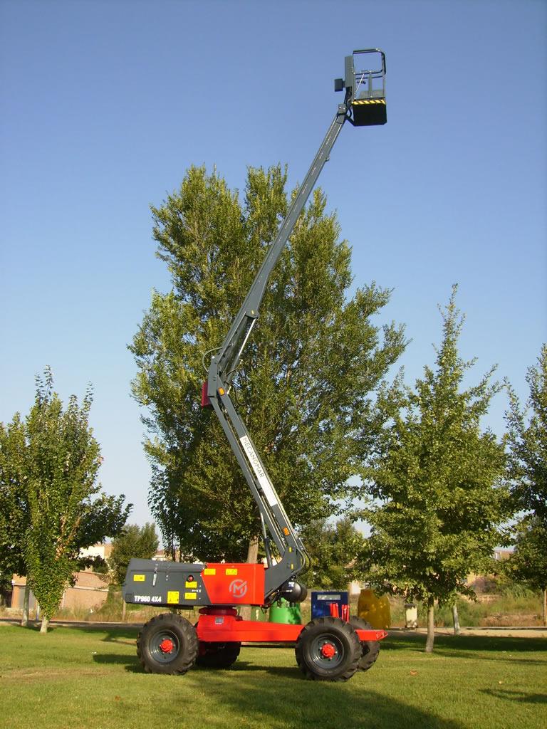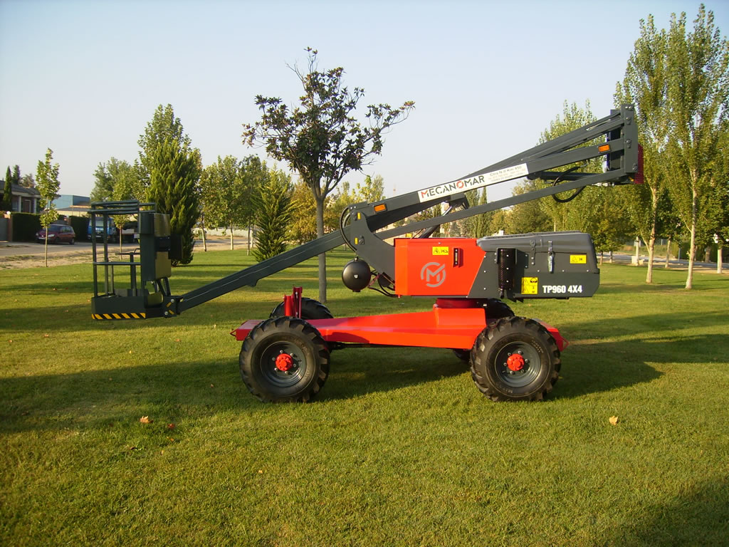 MECANO-MAR TP 1200 con una altura de trabajo de 14 mtrs, con gran rapidez en los movimientos de la cesta de trabajo. Ideales para la poda en altura, tanto en explotación agraria(chopos forestación)como en mantenimiento árboles de ciudad, camping, zonas urbanas, propiedades particulares( jardines etc...).